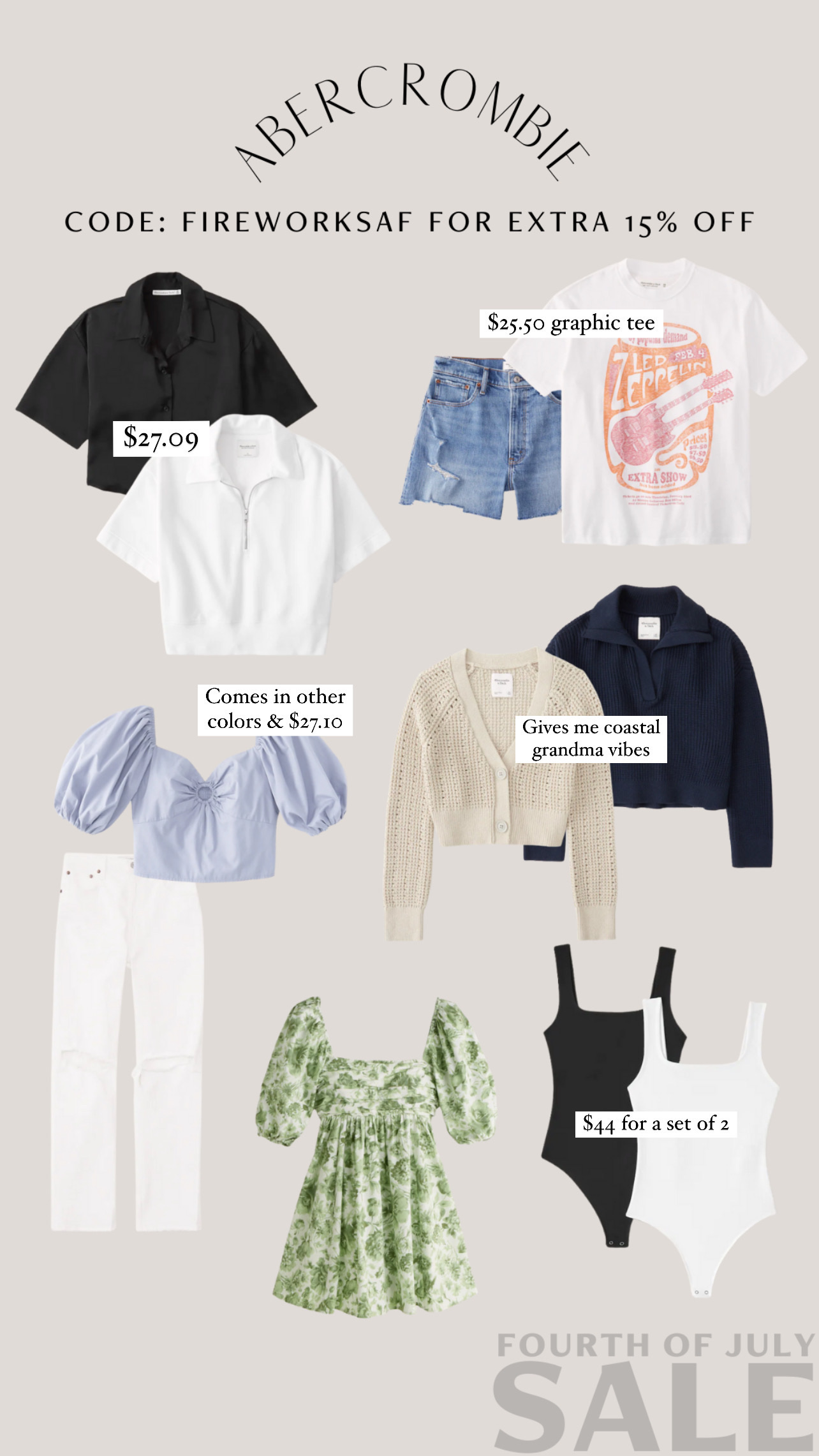 - ABERCROMBIE & FITCH: 25% off everything + extra 15% off with code FIREWORKSAF